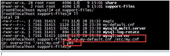 输入命令:cp my-default.cnf /etc/my.cnf