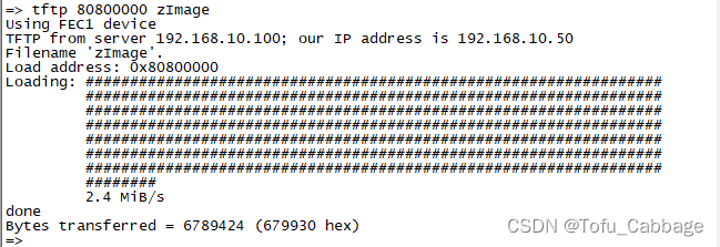 1、将zImage和需要的设备树文件拷贝到tftp文件夹下