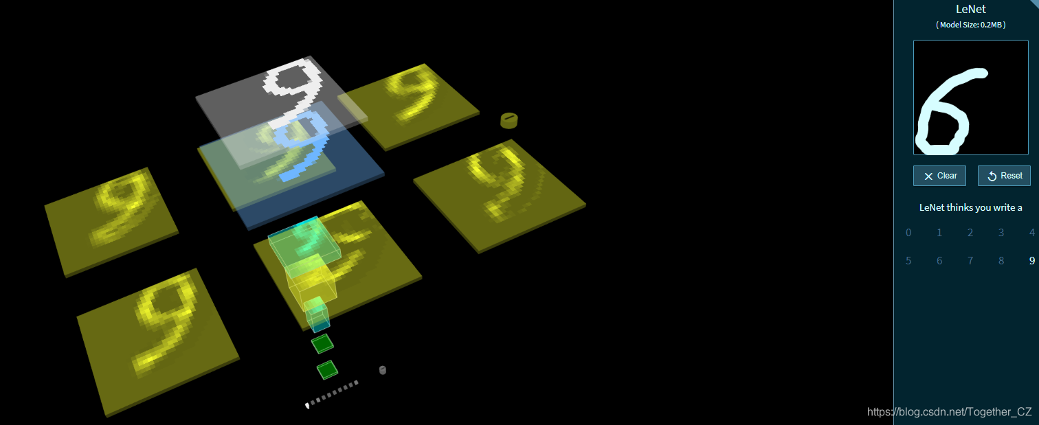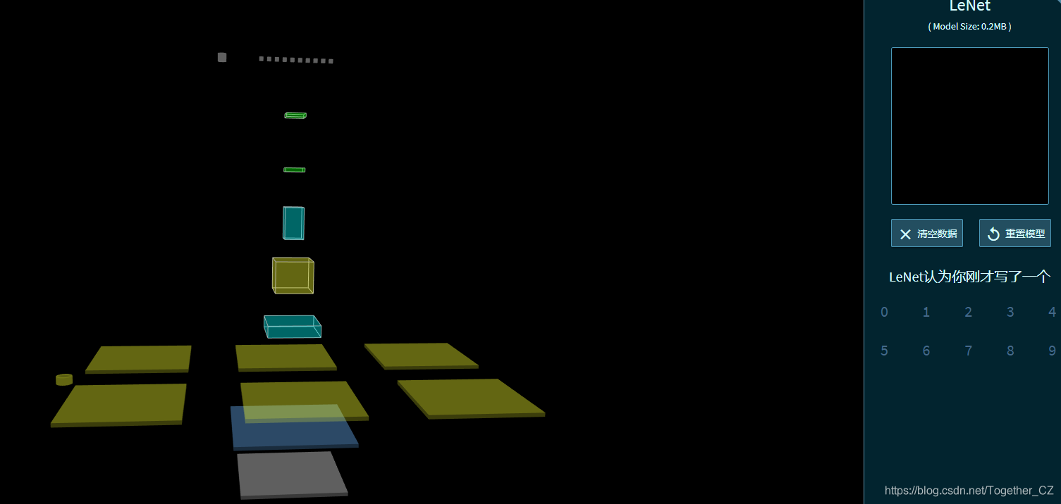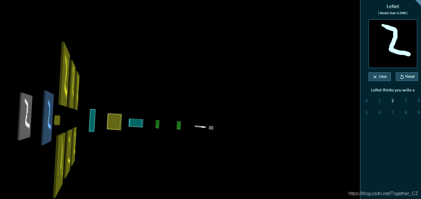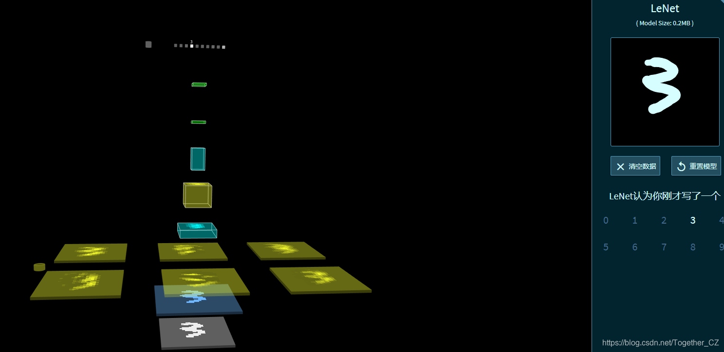 今天在查资料的时候无意间发现了一个很有意思的基于浏览器端运行的神经网络可视化应用,可以对网络从输入端到输出端的每一层进行可视化的展示,关键还是3D立体的展示方式,着实很惊艳。