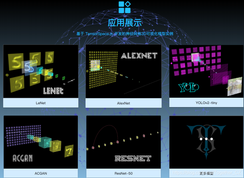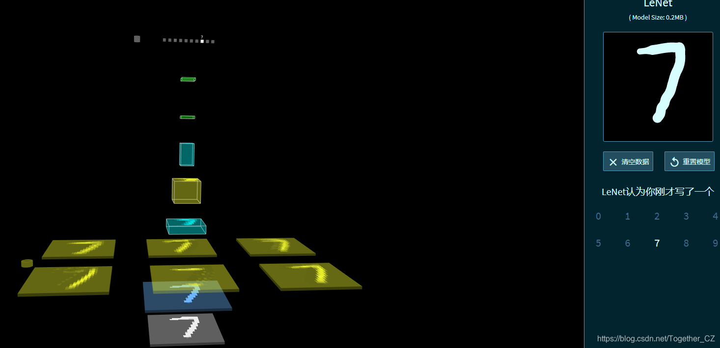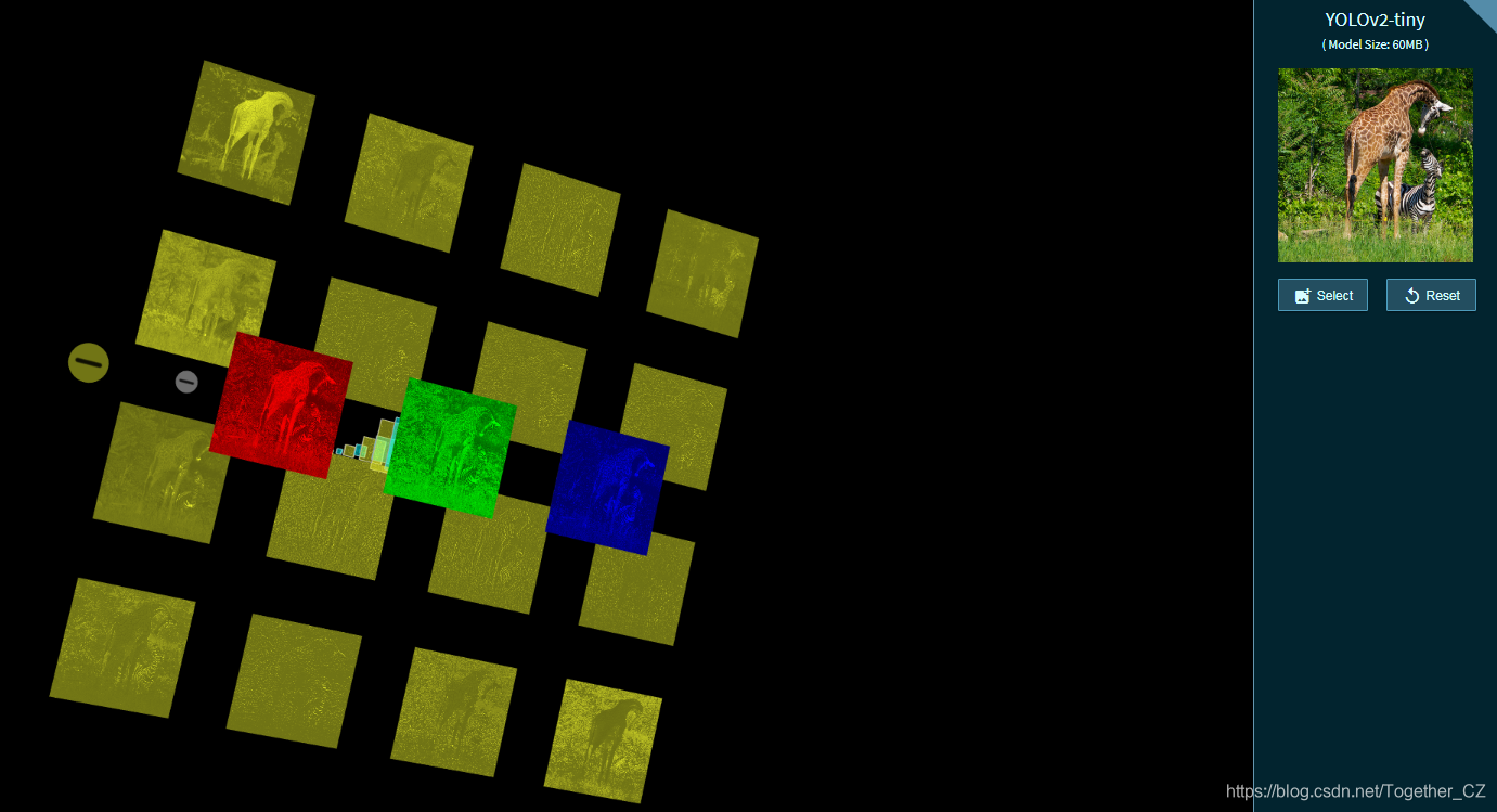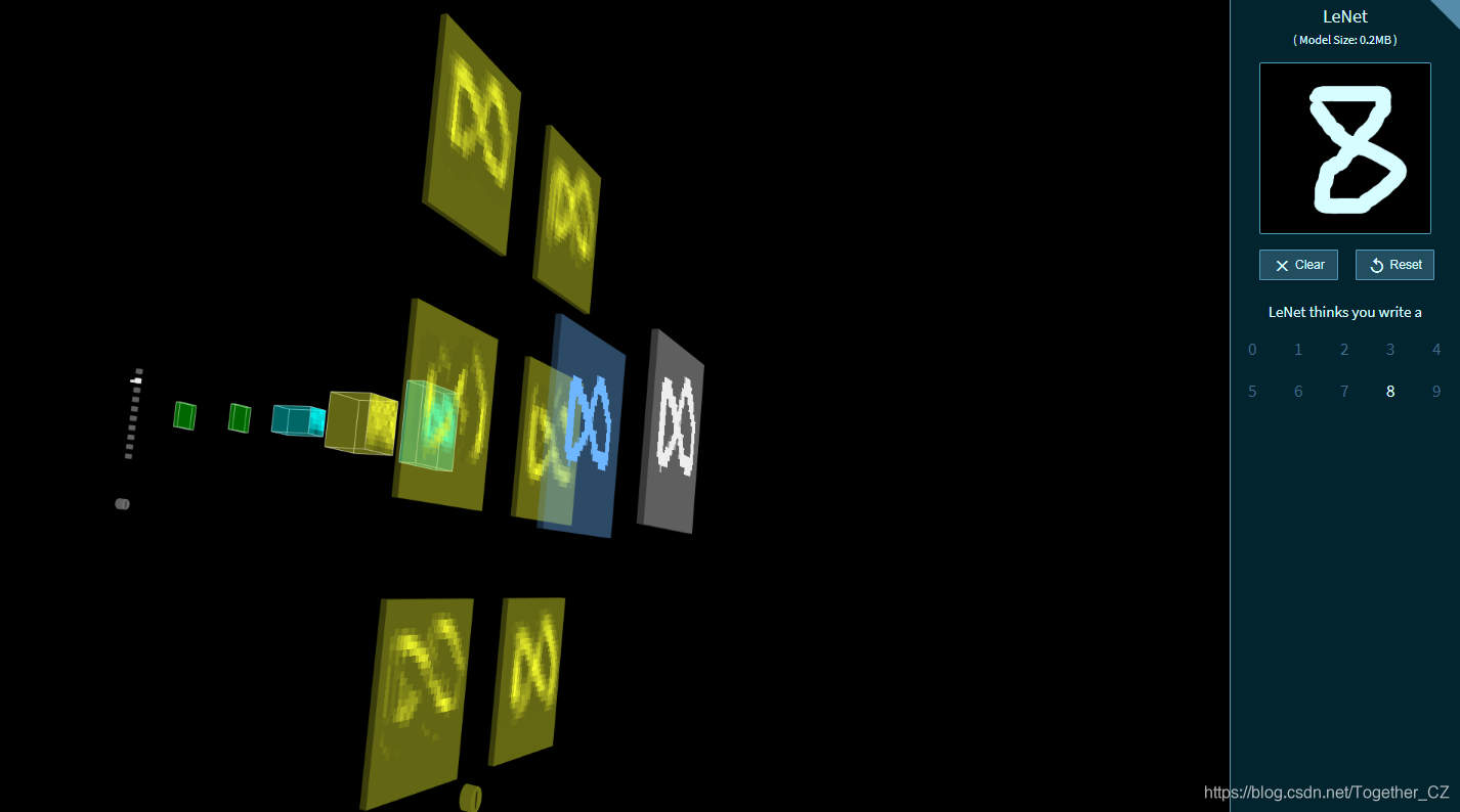 今天在查资料的时候无意间发现了一个很有意思的基于浏览器端运行的神经网络可视化应用,可以对网络从输入端到输出端的每一层进行可视化的展示,关键还是3D立体的展示方式,着实很惊艳。