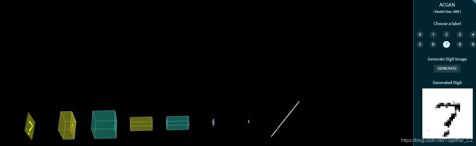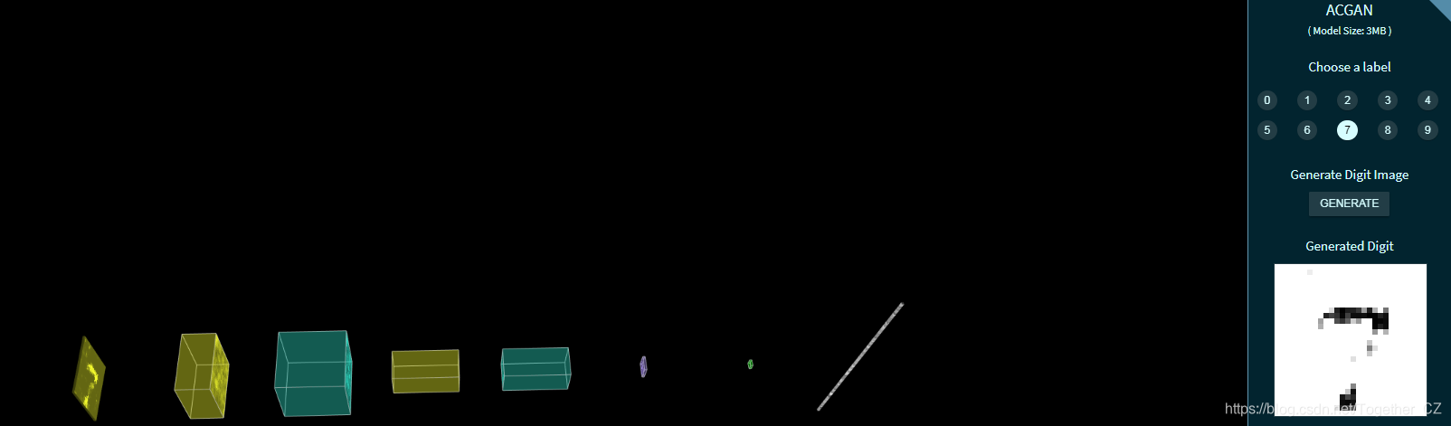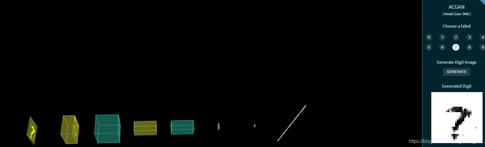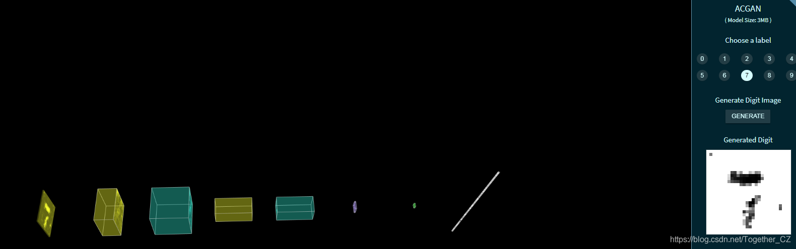 接下来我们看下基于GAN的手写数字生成样例,这里提供体验的模型是ACGAN,下面是应用实例截图: