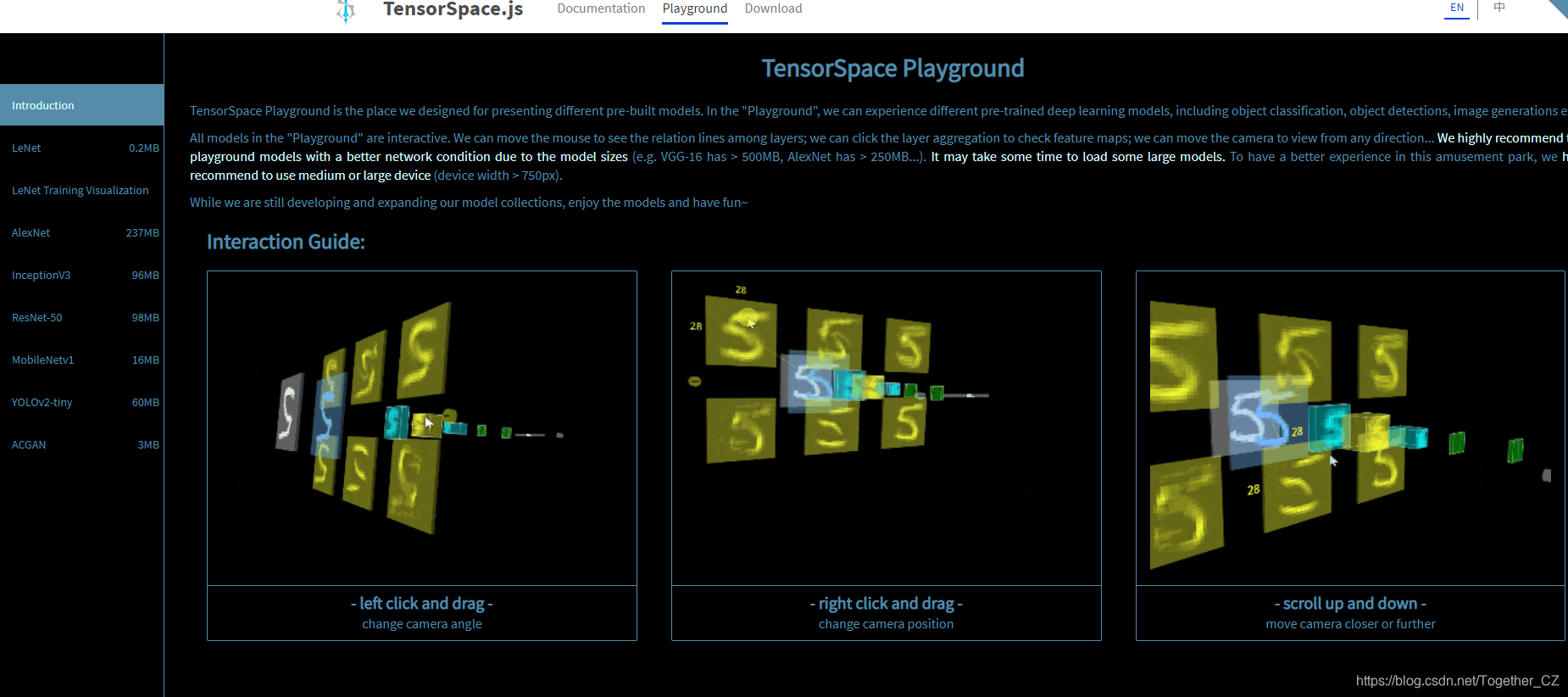 本来还想体验使用一下AlexNet模型的,但是无奈这个模型的体积太大了,加载了半个多小时还没有加载出来,这里就不再进行使用了,地址在这里,感兴趣的话可以自己使用体验一下。