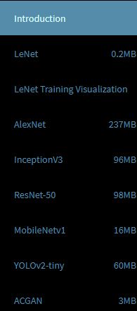 还可以清晰看到每个模型的体积大小,这里我们先选用最小的LeNet模型来体验一下,打开截图如下所示: