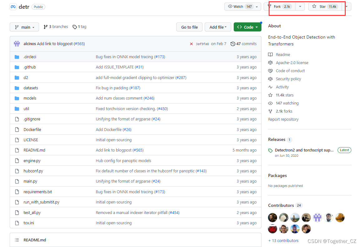 DETR官方项目地址在这里,如下所示: