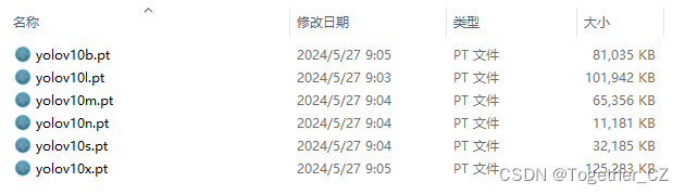 weights目录主要是用于存放官方发布的基于COCO数据集的预训练模型权重,模型一共有:n/s/m/b/l/x六种尺寸,可以自行下载即可,模型下载链接如下: