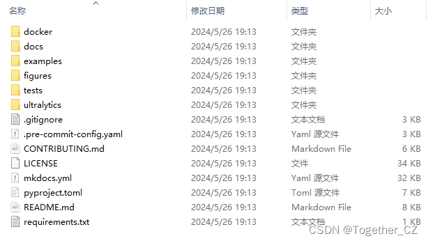 下载得到所需要的项目之后,一般习惯去除暂时用不到的内容,简化项目结构的同时便于整理,另外部分数据需要提前准备好,比如:官方的预训练权重文件,提前下载好存储在相应的目录中。