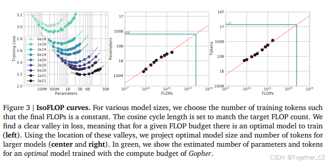 在附录C中,我们在两个额外的数据集上复现了IsoFLOP分析:C4(Raffel et al., 2020a)和GitHub代码(Rae et al., 2021)。在这两种情况下,我们得出了相似的结论:模型大小和训练token数量应等比例扩展。