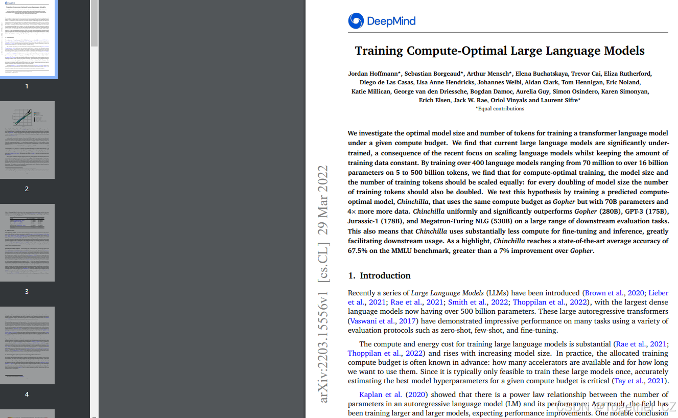 Chinchilla的成功表明,更小的模型但更多的训练数据可以在相同的计算预算下实现更好的性能。