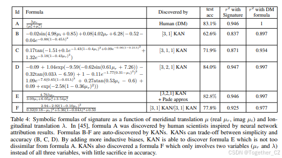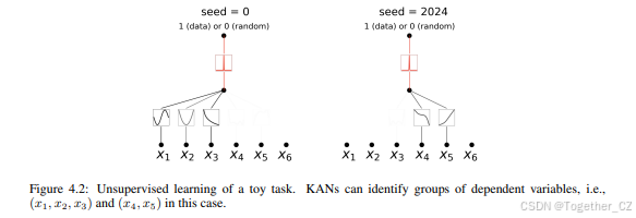 有趣的是,KANs 的无监督模式可以重新发现几个已知的数学关系。好消息是,KANs 发现的结果可能是可靠的;坏消息是,我们还没有发现任何新的东西。值得注意的是,我们选择了一个浅层的 KAN 以便于简单可视化,但更深的 KANs 可能会发现更多的关系(如果存在)。我们希望在未来的工作中研究如何使用更深的 KANs 发现更复杂的关系。