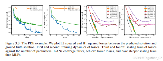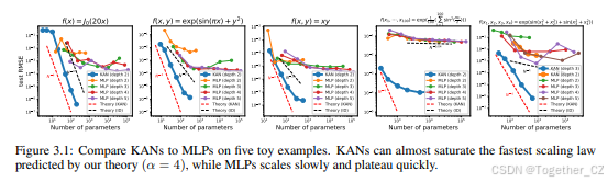神经缩放定律:KANs 具有比 MLPs 更快的神经缩放定律,能够在高维数据中打破维度诅咒。