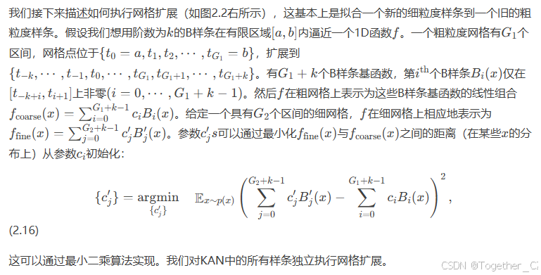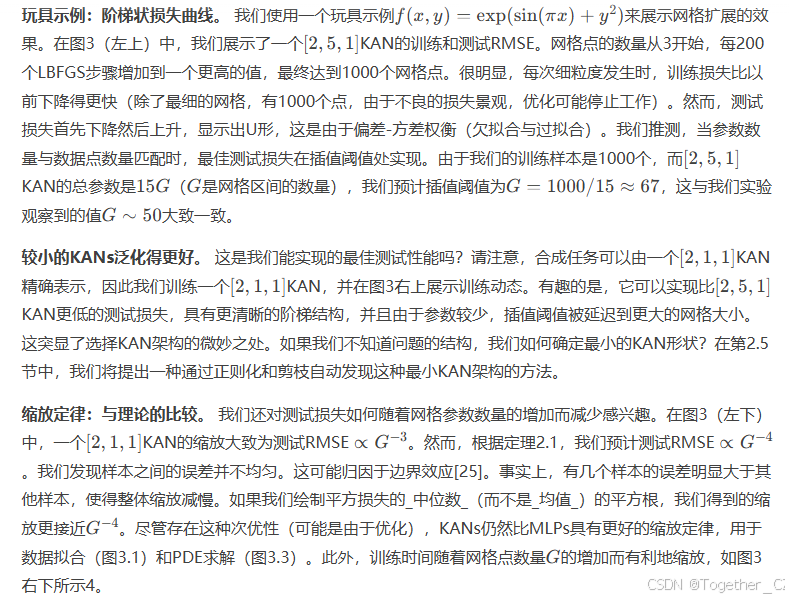 原则上,样条可以通过使网格任意细粒度来任意准确地逼近目标函数。KANs继承了这一良好特性。相比之下,MLPs没有“细粒度”的概念。诚然,增加MLPs的宽度和深度可以提高性能(“神经缩放定律”)。然而,这些神经缩放定律是缓慢的(在上一节中讨论)。它们也很昂贵,因为不同大小的模型是独立训练的。相比之下,对于KANs,可以首先训练一个具有较少参数的KAN,然后通过简单地使其样条网格更细来扩展到具有更多参数的KAN,而无需从头开始重新训练更大的模型。