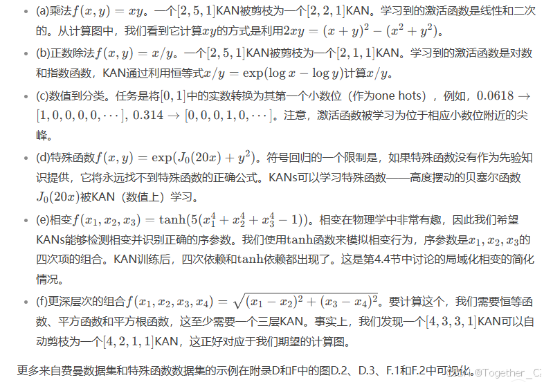 可解释性:KANs 可以通过可视化激活函数来揭示数据的组合结构,帮助科学家发现数学和物理定律。