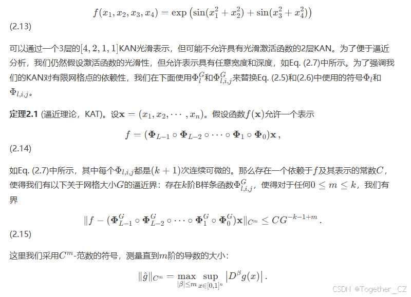 多层感知器(MLPs)受通用逼近定理的启发。我们则关注科莫哥洛夫-阿诺德表示定理,它可以通过一种称为科莫哥洛夫-阿诺德网络(KANs)的新型神经网络实现。我们在第2.1节回顾了科莫哥洛夫-阿诺德定理,以启发第2.2节中科莫哥洛夫-阿诺德网络的设计。在第2.3节中,我们提供了KANs表达能力及其神经缩放定律的理论保证,并将其与文献中的现有逼近和泛化理论联系起来。在第2.4节中,我们提出了一种网格扩展技术,使KANs越来越准确。在第2.5节中,我们提出了简化技术,使KANs更具可解释性。