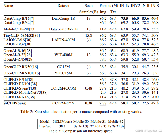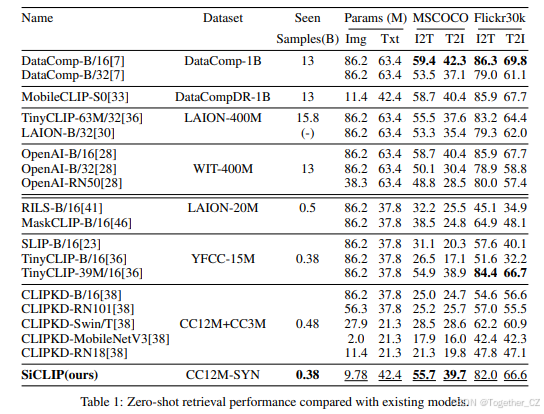 权重继承(WI)和知识蒸馏(KD)方法也被用于高效训练。TinyCLIP通过跨模态亲和力模仿和WI训练紧凑的CLIP模型。Yang等人探索了不同KD方法在CLIP训练中的有效性。