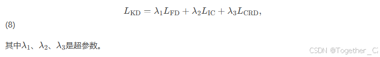 其中τ是可学习的温度参数,Sim表示图像和文本特征之间的相似度矩阵。我们的最终蒸馏损失定义为: