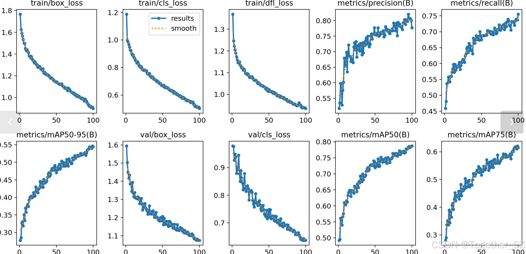 这个指标考虑了多个IoU阈值下的平均精度,从而更全面、更准确地评估模型性能。当mAP0.5:0.95的值很高时,说明算法在不同阈值下的检测结果均非常准确,覆盖面广,可以适应不同的场景和应用需求。