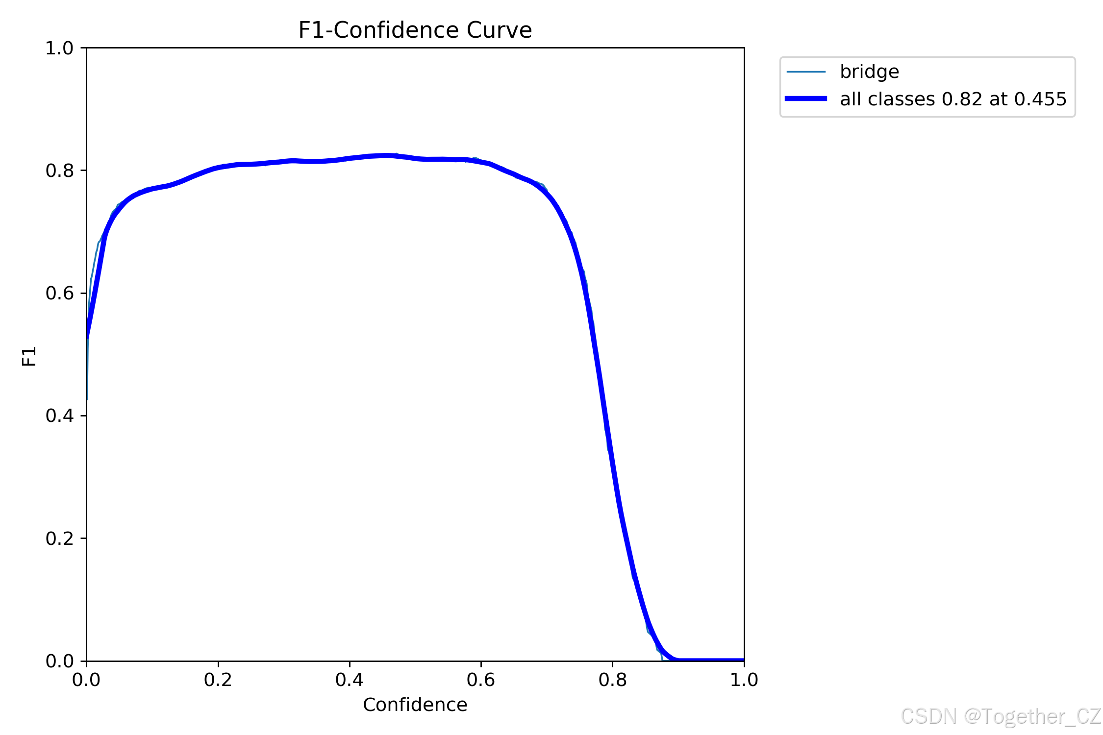 F1分数是精确率和召回率的调和平均值,它综合考虑了两者的性能指标。F1值曲线可以帮助我们确定在不同精确率和召回率之间找到一个平衡点,以选择最佳的阈值。