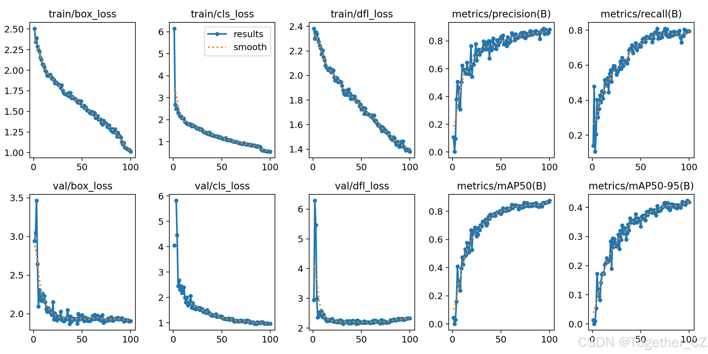 这个指标考虑了多个IoU阈值下的平均精度,从而更全面、更准确地评估模型性能。当mAP0.5:0.95的值很高时,说明算法在不同阈值下的检测结果均非常准确,覆盖面广,可以适应不同的场景和应用需求。