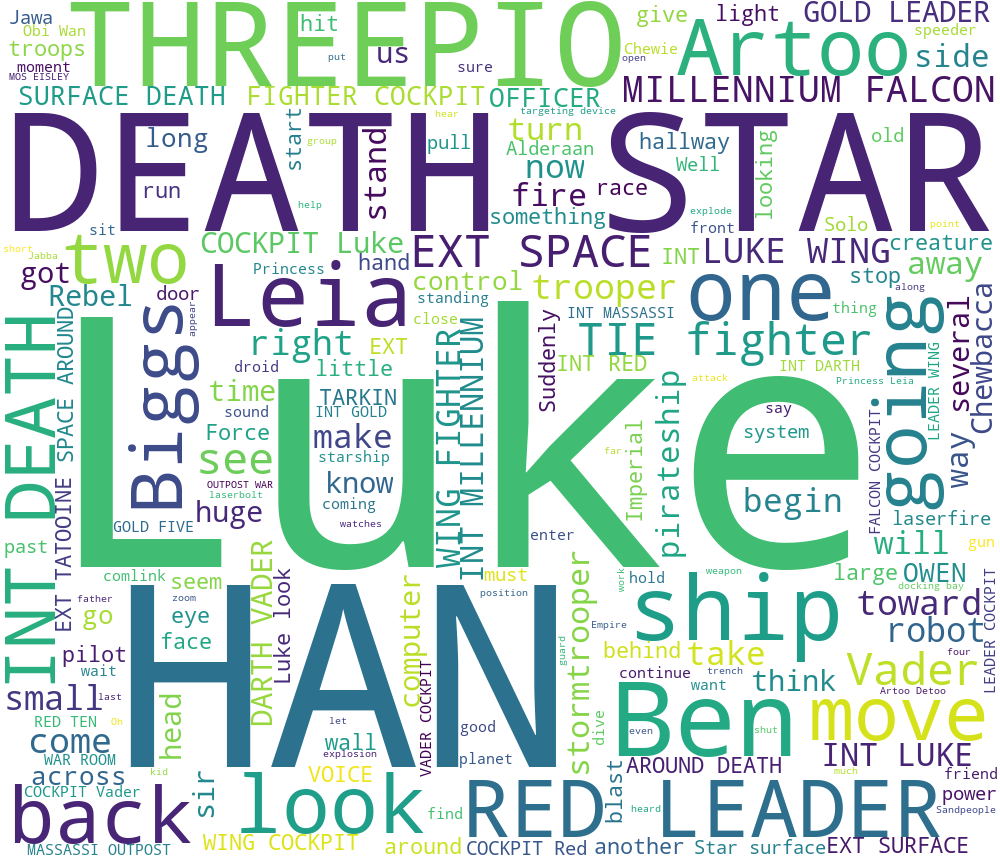 果断上手实验一下,数据集使用的是github中的一个txt文档a_new_hope.txt,生成的词云为: