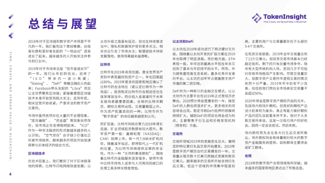 2019年区块链与数字资产市场经历了从低谷到高潮的转变,"1E0"、"Staking"、"DeFi"等概念升温,Facebook的Libra项目引发全球关注。尽管市场中仍存在不合理现象,如庞氏骗局和空气项目,但市场正走向成熟,更多项目寻求与实体经济结合。TokenInsight的年度报告揭示了这一年的行业发展与变化。