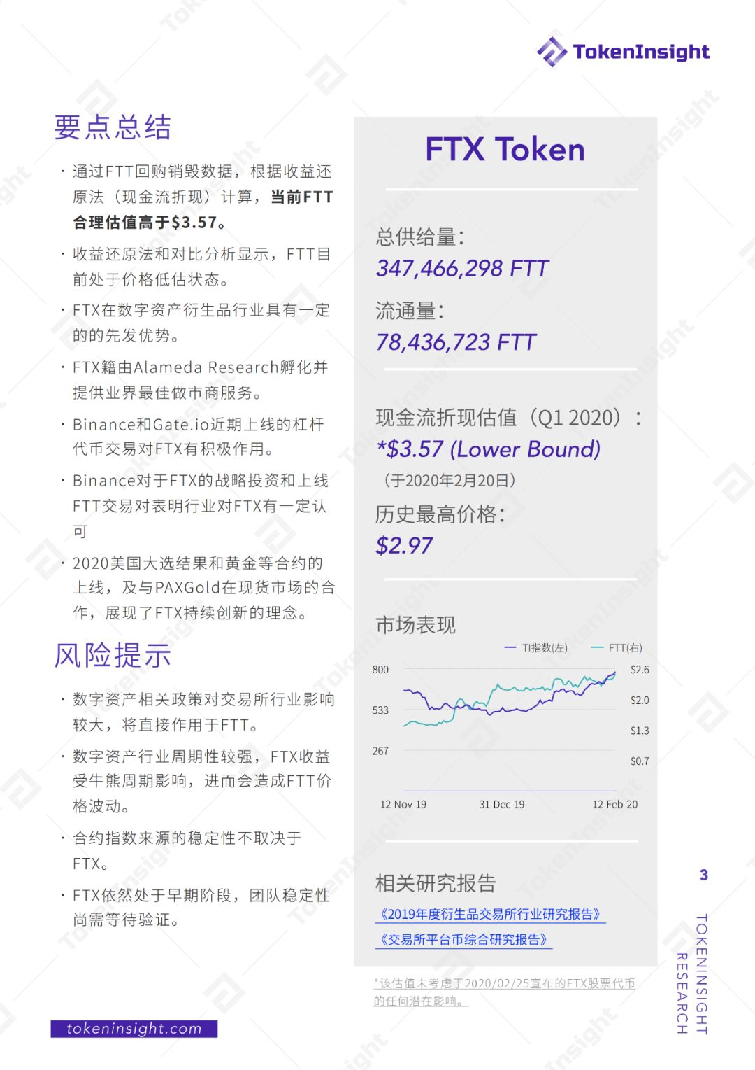 1. 通过FTT回购销毁数据,根据收益还原法(现金流折现)计算,当前FTT合理估值高于$3.57。