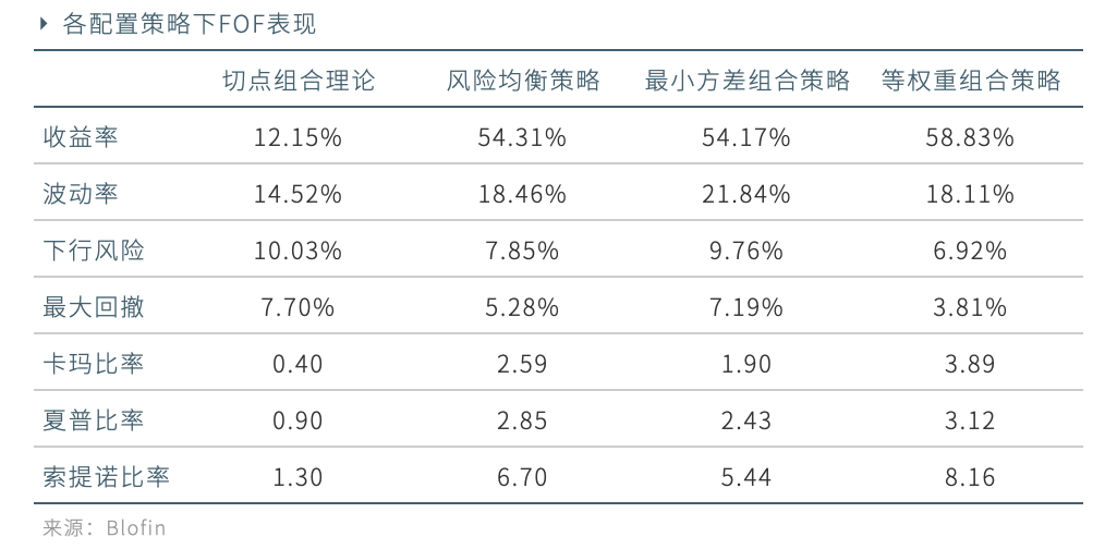虽然在大类资产配置中表现亮眼,全天候策略在数字资产FOF管理中的应用尚且有限。对基金产品的分类和影响基金表现的核心变量的研究要求较高,是Blofin未来研究的方向之一。