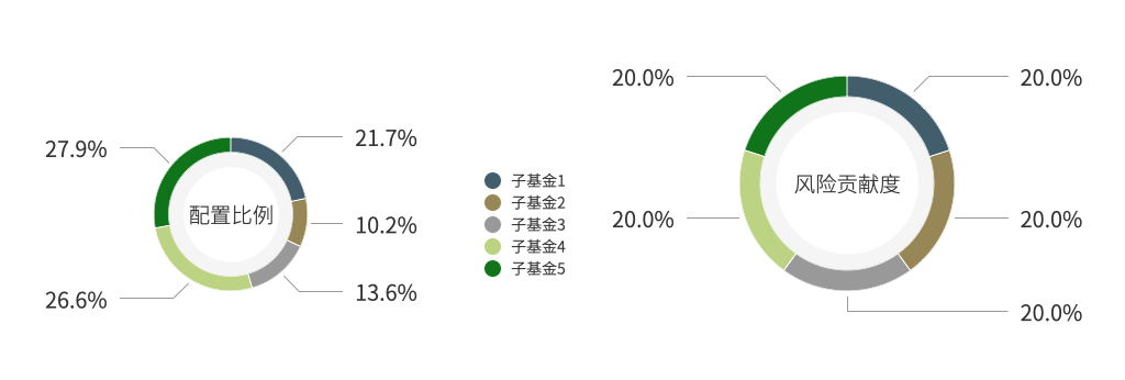 以五支子基金构成的投资域为例,风险均衡策略下的配置方案如下: