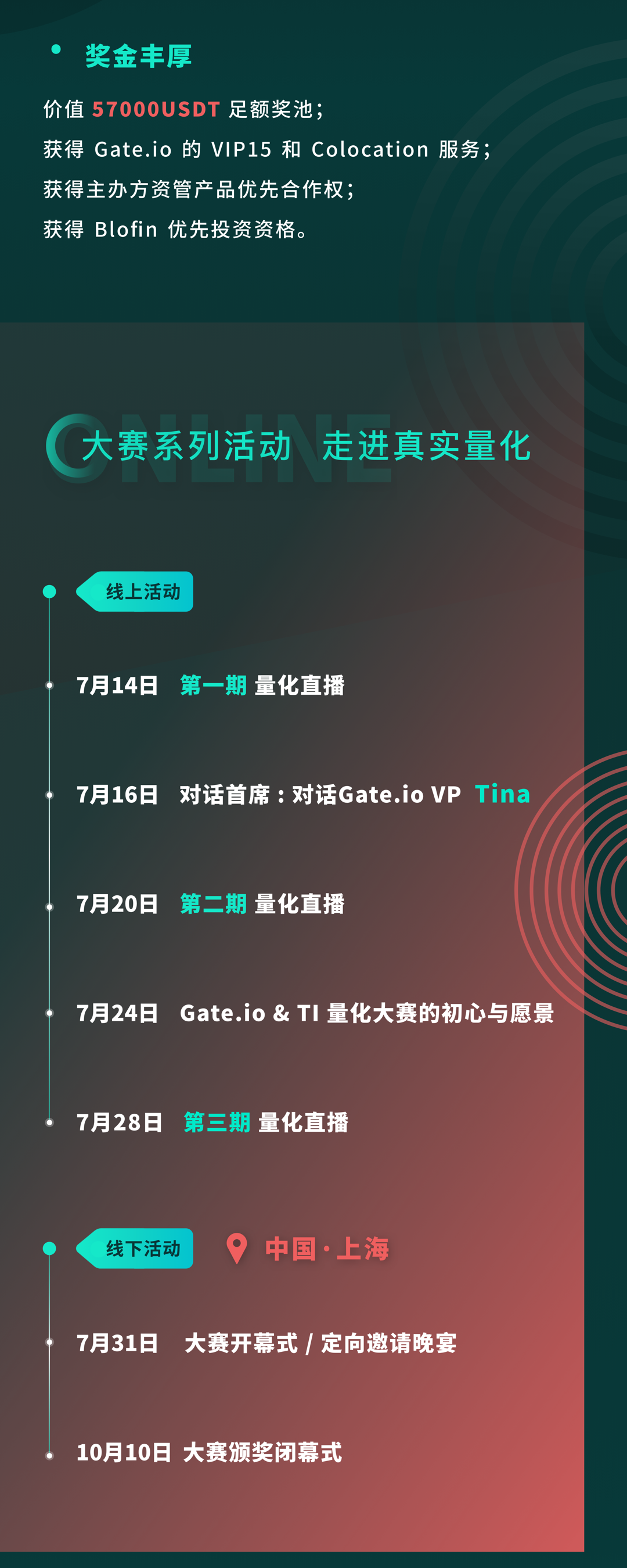 Gate.io & TI联合主办:全球首届数字资产做市商大赛暨第三届全球数字资产量化大赛,线上线下直播不断,全行业大咖实时互动,最专业前沿策略分享,与您一起走进真实量化。