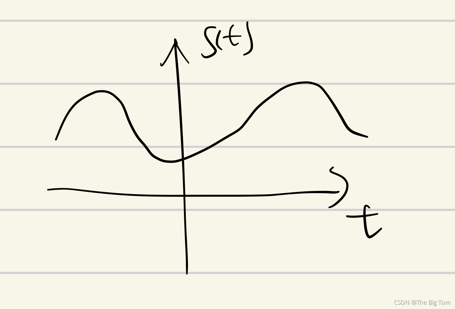 或许在初中的时候,我们都学到过,声是一种波,波动传入麦克风里的某种传感器(Sensor)从而产生了连续的电信号,而这种连续的电信号,或者说模拟信号(Analogue Signal),是我们今天第一个主角。我们把它写作 。比如它长这样: