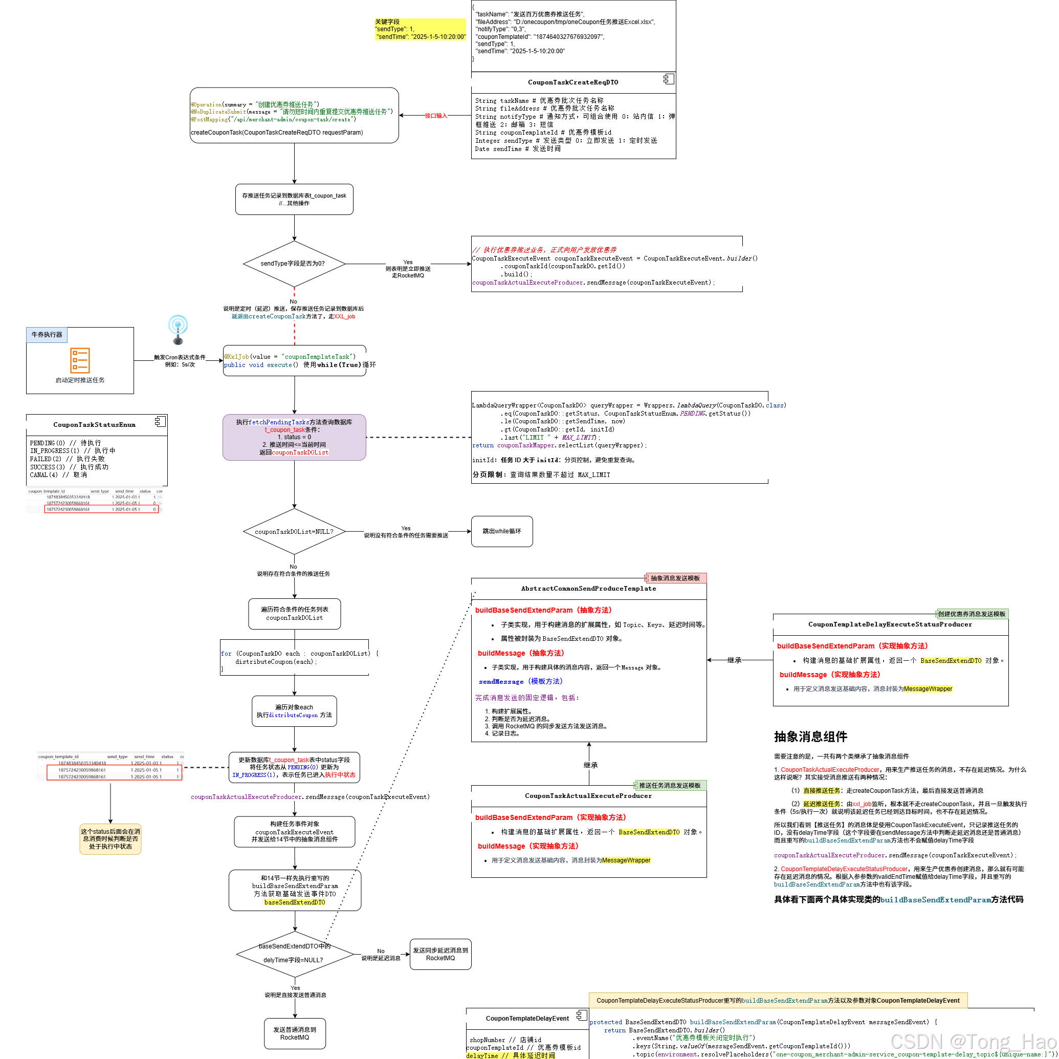 couponTaskDOList,对每个任务调用distributeCoupon(each)方法,将任务修改状态变更为执行中,并发送到消息队列进行异步处理。