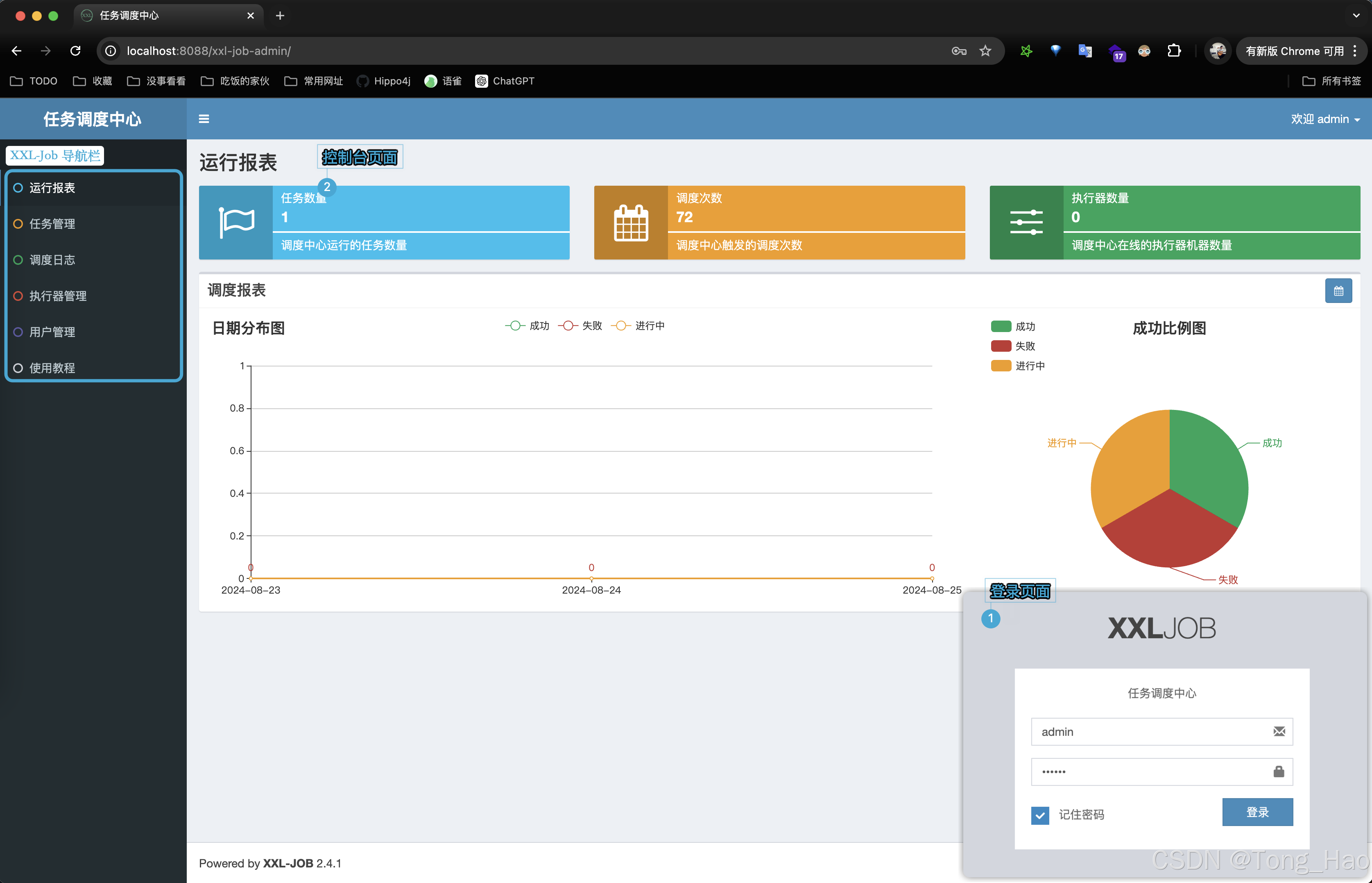 访问 XXL-Job 控制台地址 http://localhost:8088/xxl-job-admin,出现控制台页面即可。