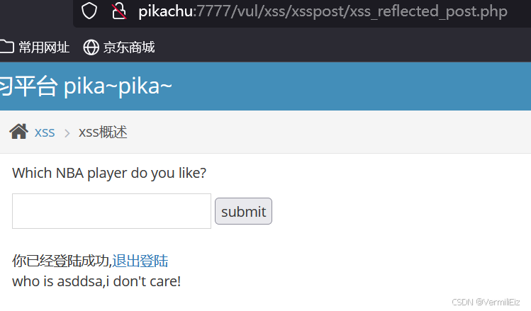 登录后发现和上一个get反射xss页面一样