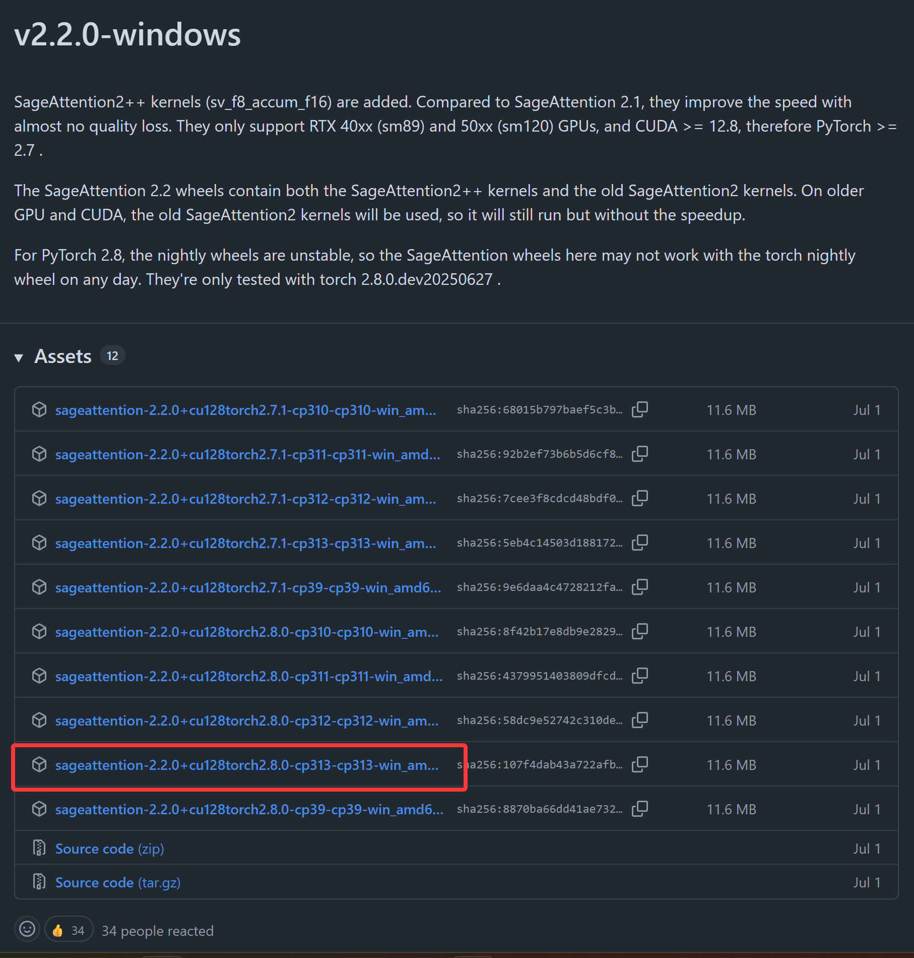 pip install sageattention-2.2.0+cu128torch2.8.0-cp313-cp313-win_amd64.whl