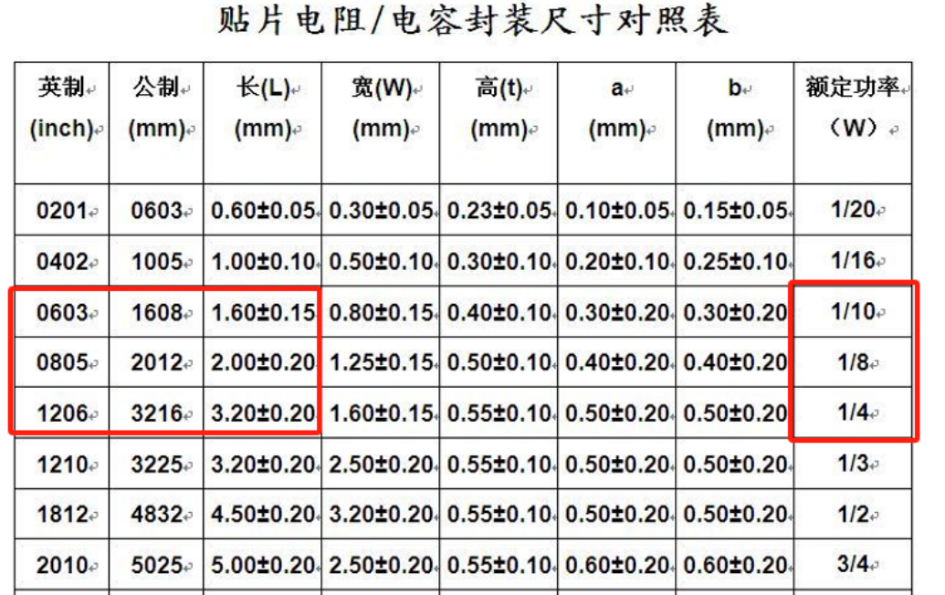 功率的话,记住0805是1/8(都有8),封装越小,功率越低,则0603是1/10,1206是1/4