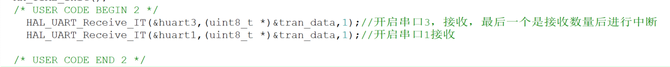 代码部分:使用的是串口中断逻辑:首先在int main()函数里打开串口3的接收,这里串口1的接收可开启可不开启