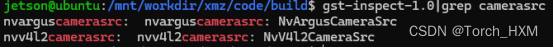 其中第一行是我们需要的摄像头元素名,有的TX2该名称可能不一样。常见的还有nvcamerasrc