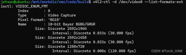 2.步骤二:查看板载摄像头支持的分辨率已经对应帧数