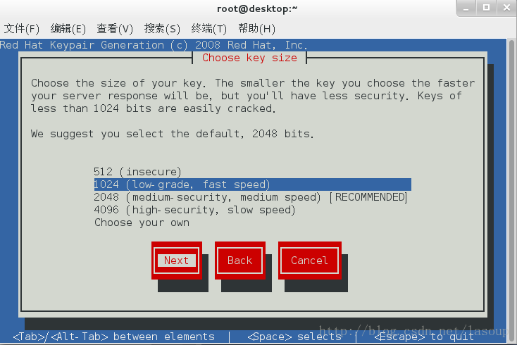 加密大小选择1024即可,太大的话文件生成过程也会变长: