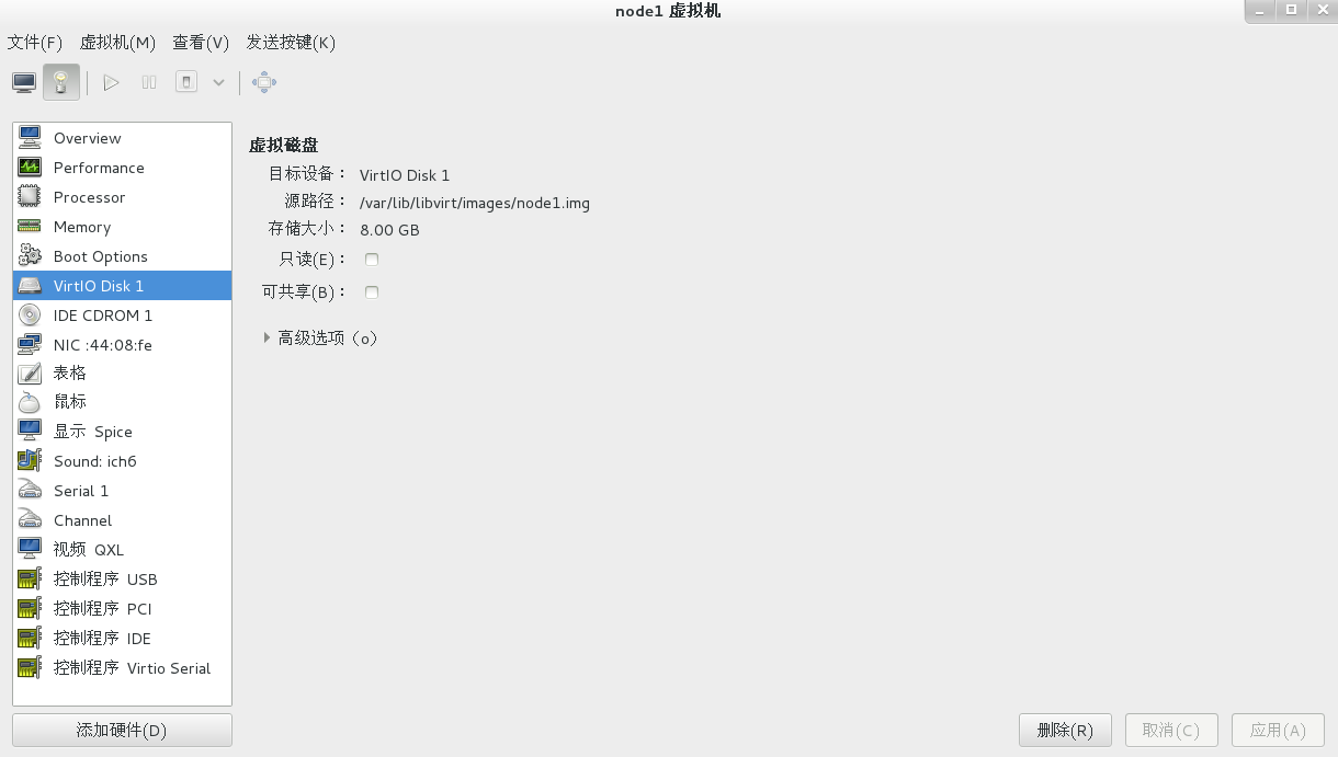 --file /var/lib/libvirt/images/$1.img \ ##硬盘文件,文件路径以及文件类型跟第1步查看到的路径和类型一样