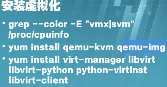 grep --color -E "vmx|svm" /proc/cpuinfo过滤查看cpu(/proc/cpuinfo)是否有虚拟化