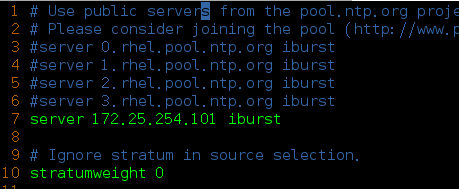 22行:去掉注释并改为允许172.25.254.x网段的机器同步server端的时间