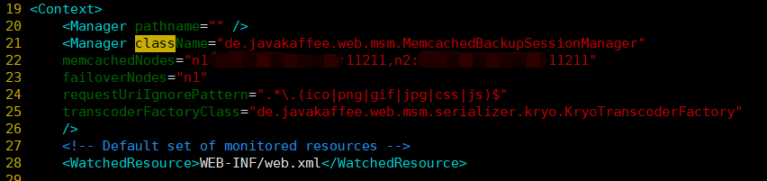 <Manager className="de.javakaffee.web.msm.MemcachedBackupSessionManager"