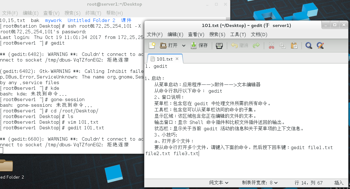 tip:gedit命令可用于在桌面上打开一个文件,详见下图中的文字