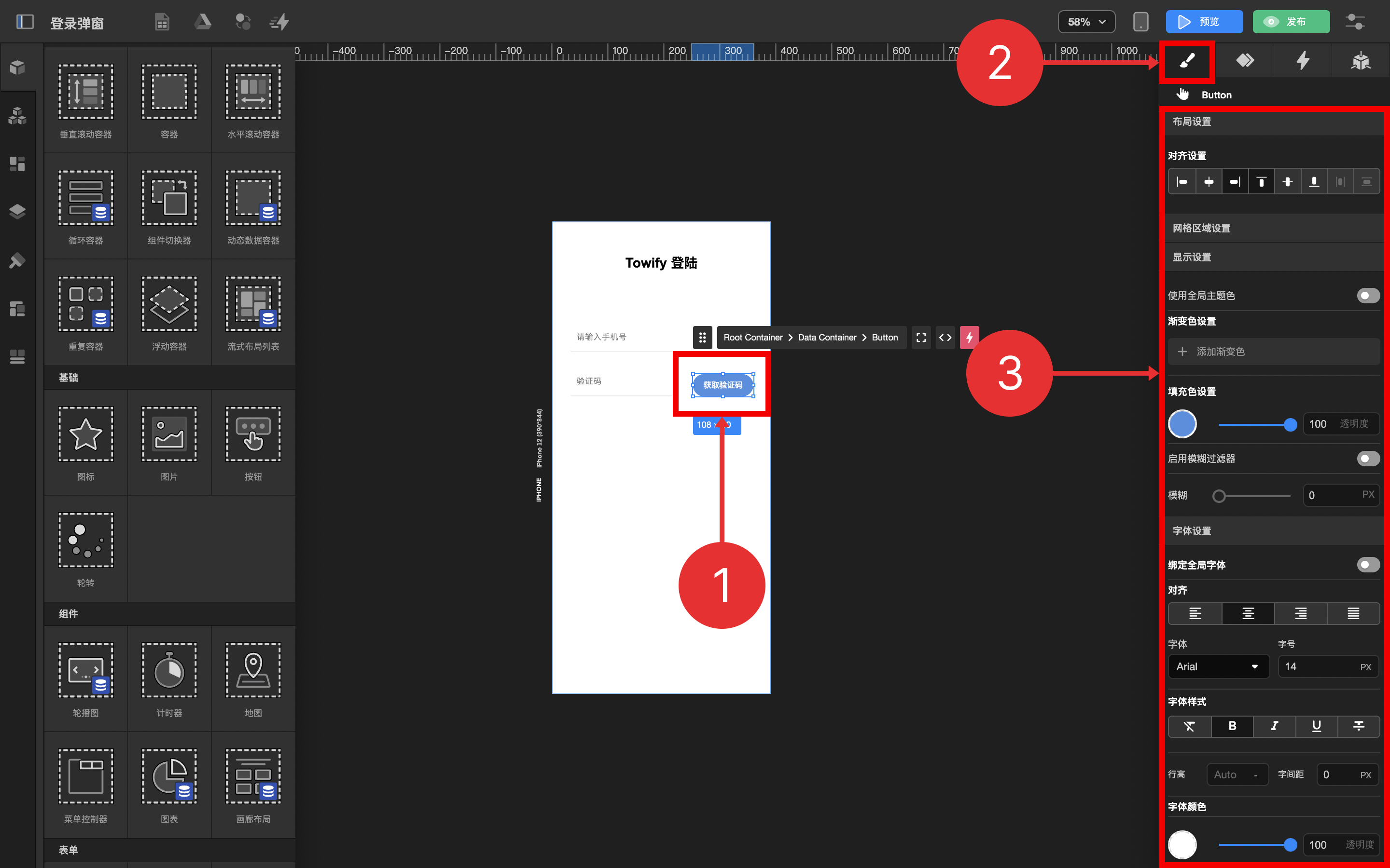 3.1. 拖拽 按钮 到 动态数据容器 中