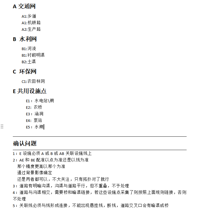 采集工作底图数据是耗时耗力的工作,空间数据不仅仅要求坐标无偏差,且要求属性数据正确,空间关系正确,而外业获取的数据通常很难满足这些要求。现有的方法是通过影像人工判读,主要判读包括确认以下图层要素是否满足以下要求,作为确认的问题图层和问题要素依据: