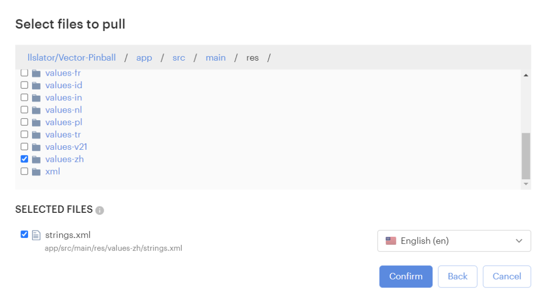 4.翻译完成后的资源文件被推至原来的内容来源,并与原来的资源文件合并。