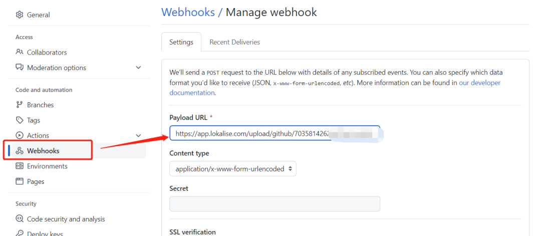 答案是肯定的,将Lokalise和GitHub连接即可。实现方式是,在GitHub中启用webhook,在其中输入Lokalise项目的URL地址: