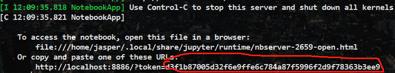 在第一次连接时,本地浏览器会弹出窗口要求认证token,只需要把远程启动notebook时弹出的token粘贴进去即可认证