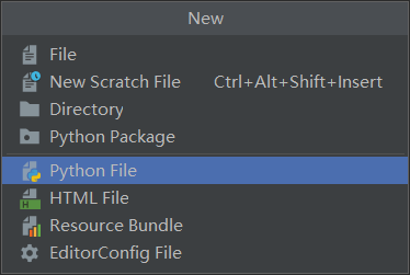我们可以在此项目中添加新的文件。点击菜单命令“File→New”打开新建对话框,可以选择多种文件类型,如网页文件、资源文件等,这里笔者选择创建Python文件(图14)。