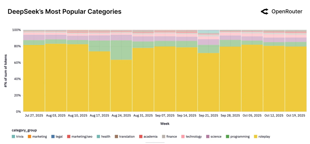 真实情况是大量用户在用开源模型做角色扮演、剧情创作、人物对话、同人故事甚至游戏系统;另一个大头则是代码生成、调试和辅助编程。